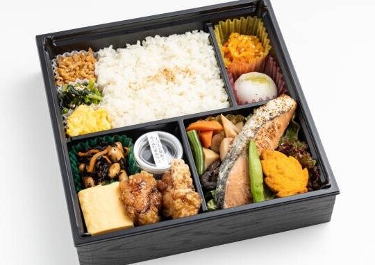 このお弁当には、まろやかでコクのあるこだわりの岩塩で仕上げたふっくらとした焼き塩鮭が含まれており、絶妙な旨味を引き出しています。